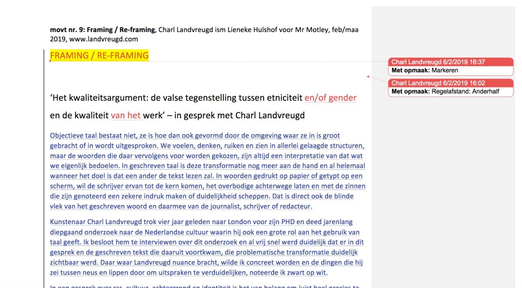 • performance: movt nr. 9: Framing Re-Framing – The interview that became an image.